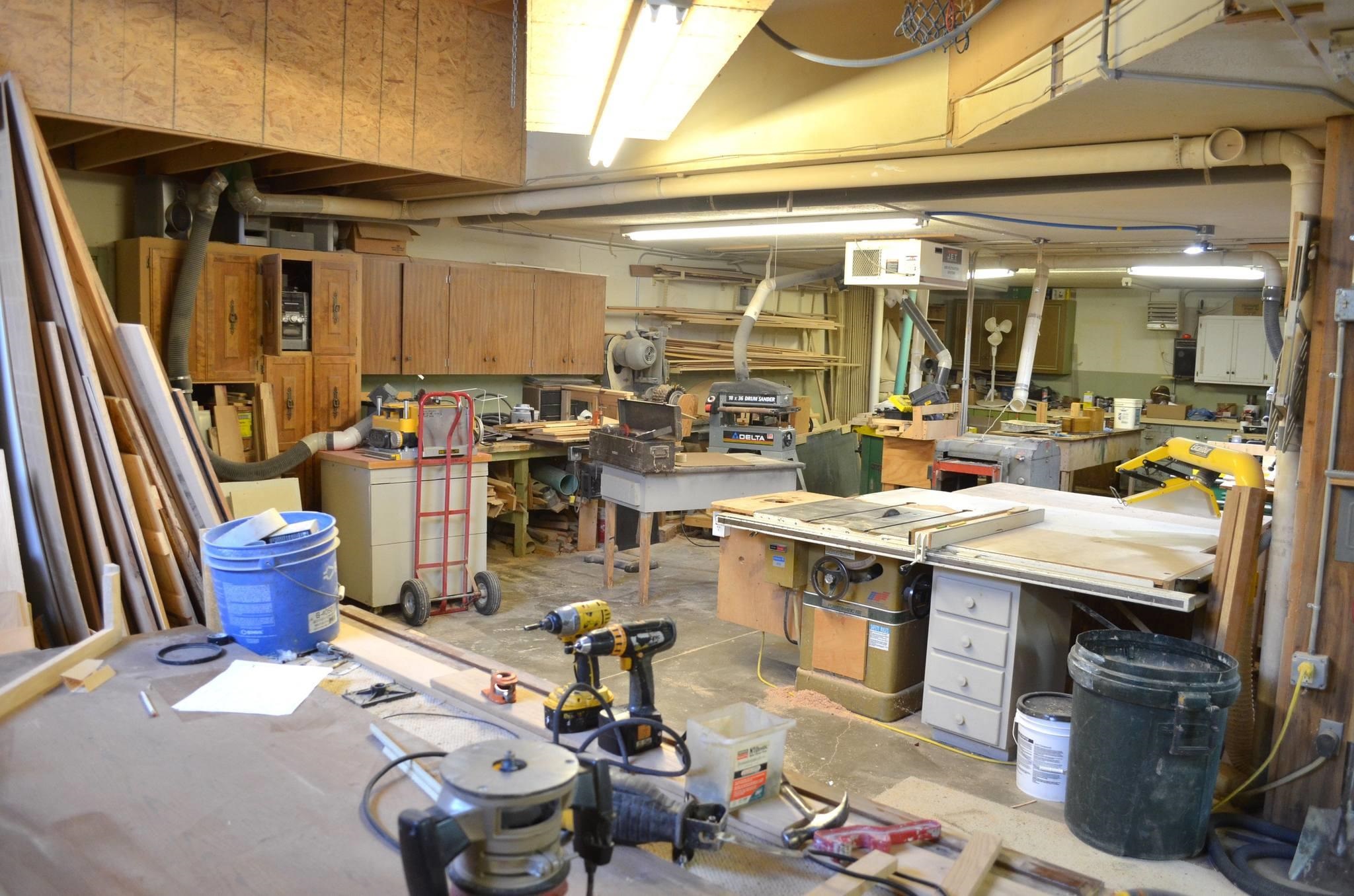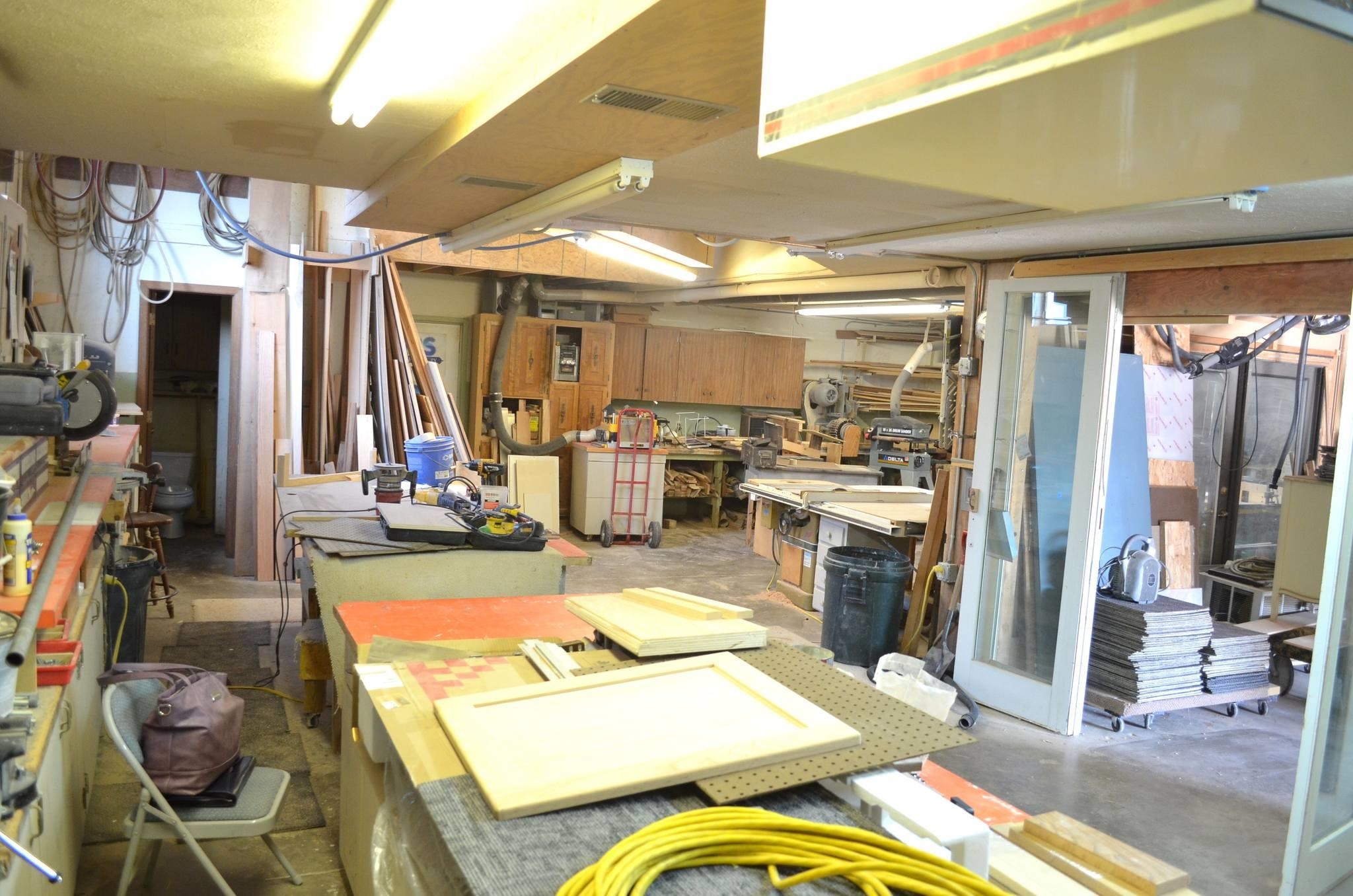 - Back Half: Currently set up for a contractor/cabinet maker business, featuring 3-phase power.